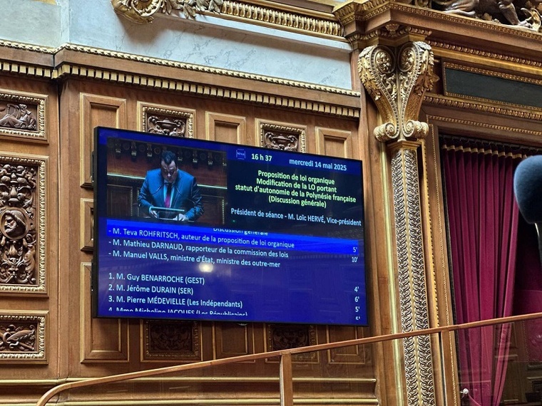 Tahiti, le 14 mai 2025 – C'est fait. Ce mercredi à Paris, 326 sénateurs ont adopté la proposition de loi portée par Lana Tetuanui et Teva Rohfritsch pour faciliter l'intervention des communes dans certains domaines relevant normalement du champ de compétence du Pays. Un texte qui avait provoqué la division au sein de la majorité indépendantiste lors de son examen à Tarahoi le 24 avril dernier.