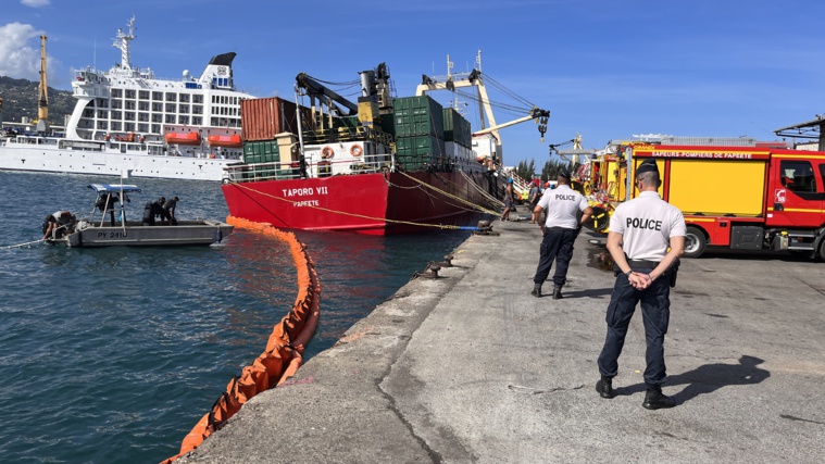 Lors d’une intervention qui s’est prolongée dans la nuit de jeudi à vendredi sous la coordination d’équipes de la sécurité civile épaulées par les pompiers de Papeete, le navire a pu être stabilisé. Vendredi matin, l’enjeu était de s'assurer que la quille du Taporo VII reposait bien sur le fond, à quai. Une équipe de plongeurs étaient sur place pour s'assurer de cela et confirmer la stabilité de l'assise du navire, malgré sa forte gite. "A partir de là, on pourra décharger, par levage de grue, tous les conteneurs entreposés sur le pont", explique le capitaine, Alban Brothers. Le pont supérieur du caboteur était encore encombré de 32 conteneurs. Deux des trois cales du Taporo VII étaient noyées, avec quantité de marchandises alimentaires, du ciment, du gravier et des parpaings. La troisième cale, située au niveau de quai, est épargnée. Elle contient des véhicules, du bois de construction et des colis divers. Le chargement total est estimé à 2 000 tonnes. "Ensuite, on lancera les opérations de pompage", complète le capitane. S’en suivront probablement d’importantes réparations avant que le navire ne puisse reprendre ses tournées commerciales.