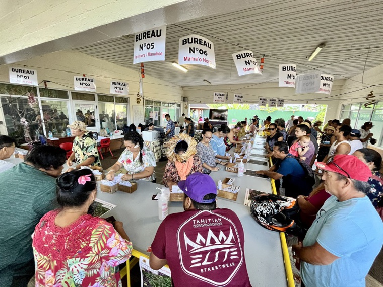 Bureaux de vote à Papeete ce dimanche, où le vote Tavini arrive en tête (3430 voix) à l’issue du premier tour. Crédit photo : Antoine Samoyeau.