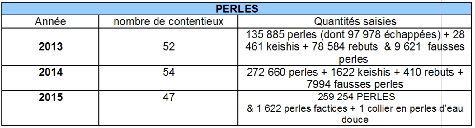 A titre d’exemple, ces dernières semaines, les douanes ont réalisé directement ou contribué à la réalisation de quatre affaires différentes qui démontrent la variété du spectre des missions douanières : 733 kilos de cocaïne saisis en liaison avec la marine nationale et la gendarmerie au large des Gambier, 31 kilos de perles prohibées, de l’argent et de l’ice à la circulation et après deux visites domiciliaires, 130 pieds orchidées prohibées en provenance de Thaïlande contenus dans trois colis importés séparément au centre de tri postal et enfin des munitions.