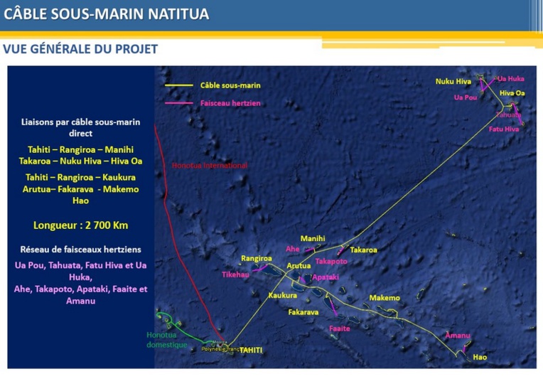 Si tout se passe comme prévu, le câble sous-marin Natitua sera inauguré en novembre ou décembre 2018. Il reliera 10 îles des Marquises et des Tuamotu à Tahiti par fibre optique, tandis qu'un système complémentaire de faisceaux hertziens connectera dix îles supplémentaires à ce réseau. Toutes les îles concernées profiteront également d'une restauration de leurs réseaux téléphoniques, et certaines îles passeront même en 100% fibre optique comme Rangiroa ou les principaux villages des Marquises.