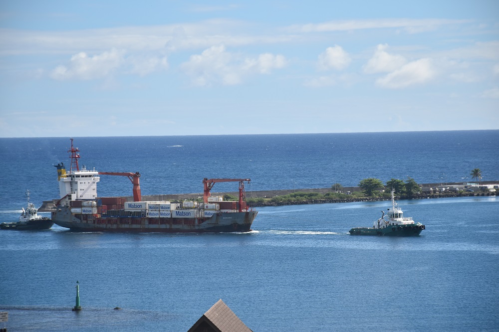 PAPEETE, le 9 avril 2019 - Après quatre jours de remorquage "Le Samoana", le cargo portugais qui a subi une avarie moteur au large des Îles Sous-le-Vent vendredi dernier, est arrivé ce mardi dans la rade de Papeete.