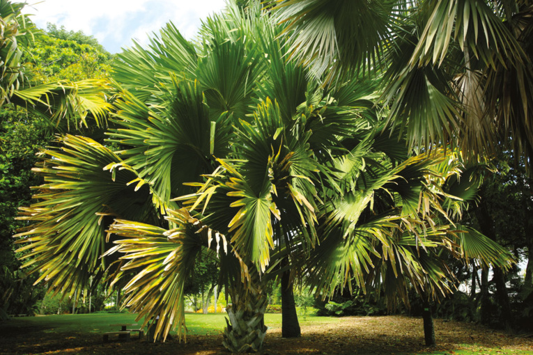 Ce palmier géant (talipot palm) répond au nom scientifique de Corypha umbraculifera (Arécacées). Cet immense latanier est originaire d’Inde et du Sri Lanka.