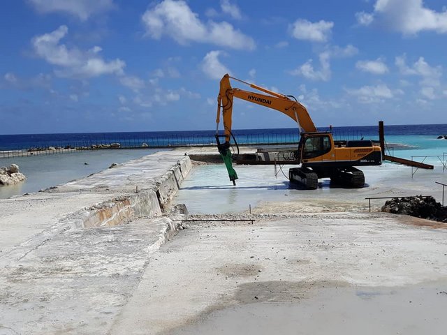TAKUME, le 6 septembre 2018 - Cela fait plusieurs mois que le débarcadère de Takume est en réfection. Les habitants attendent avec impatience la fin du chantier, surtout que les échanges avec l'extérieur ne sont pas évidents par mauvais temps. Le tāvana de cet atoll aimerait rallonger la piste aéroportuaire pour accueillir les ATR 42.