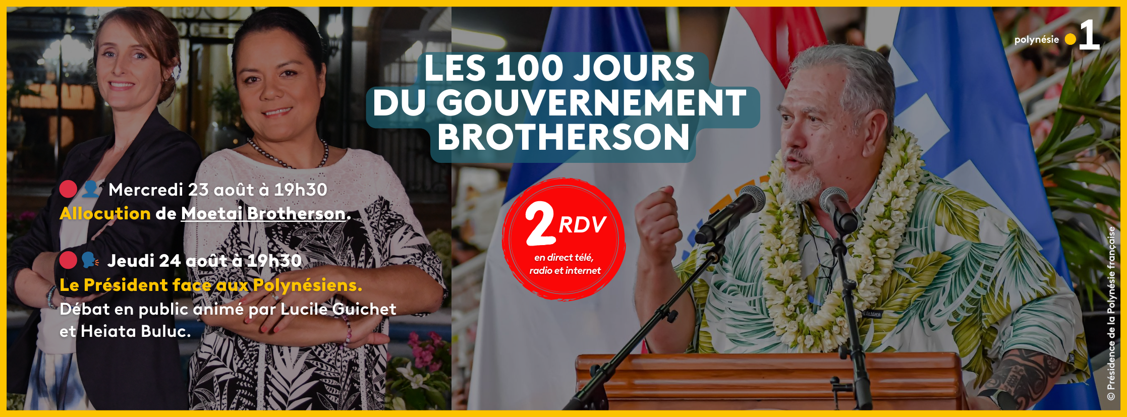 Tahiti, le 22 août 2023 - Pour deux soirs, Moetai Brotherson va s'inviter sur les plateaux de télévisions polynésiens pour présenter le bilan de ses 100 jours à la présidence et de son gouvernement.