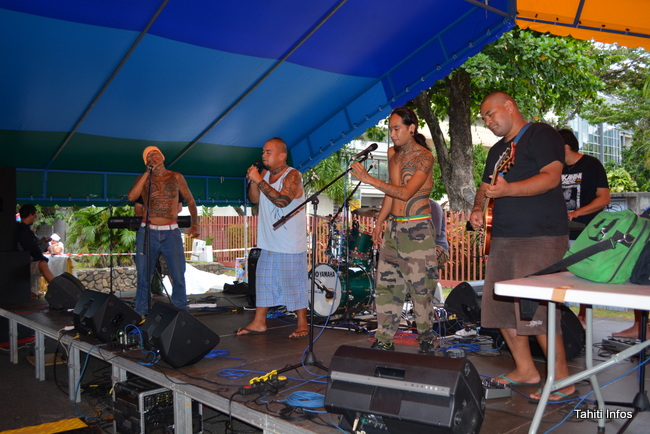 Et enfin pour se détendre dans l'après-midi, malgré un retard vite accumulé tellement le programme était dense, une demi douzaine de concerts avec des musiciens connus (Takanini et Tikahiri) et moins connus ont mis le feu à l'entrée du village, accompagnés d'artistes de rue qui égaillaient les chalands.