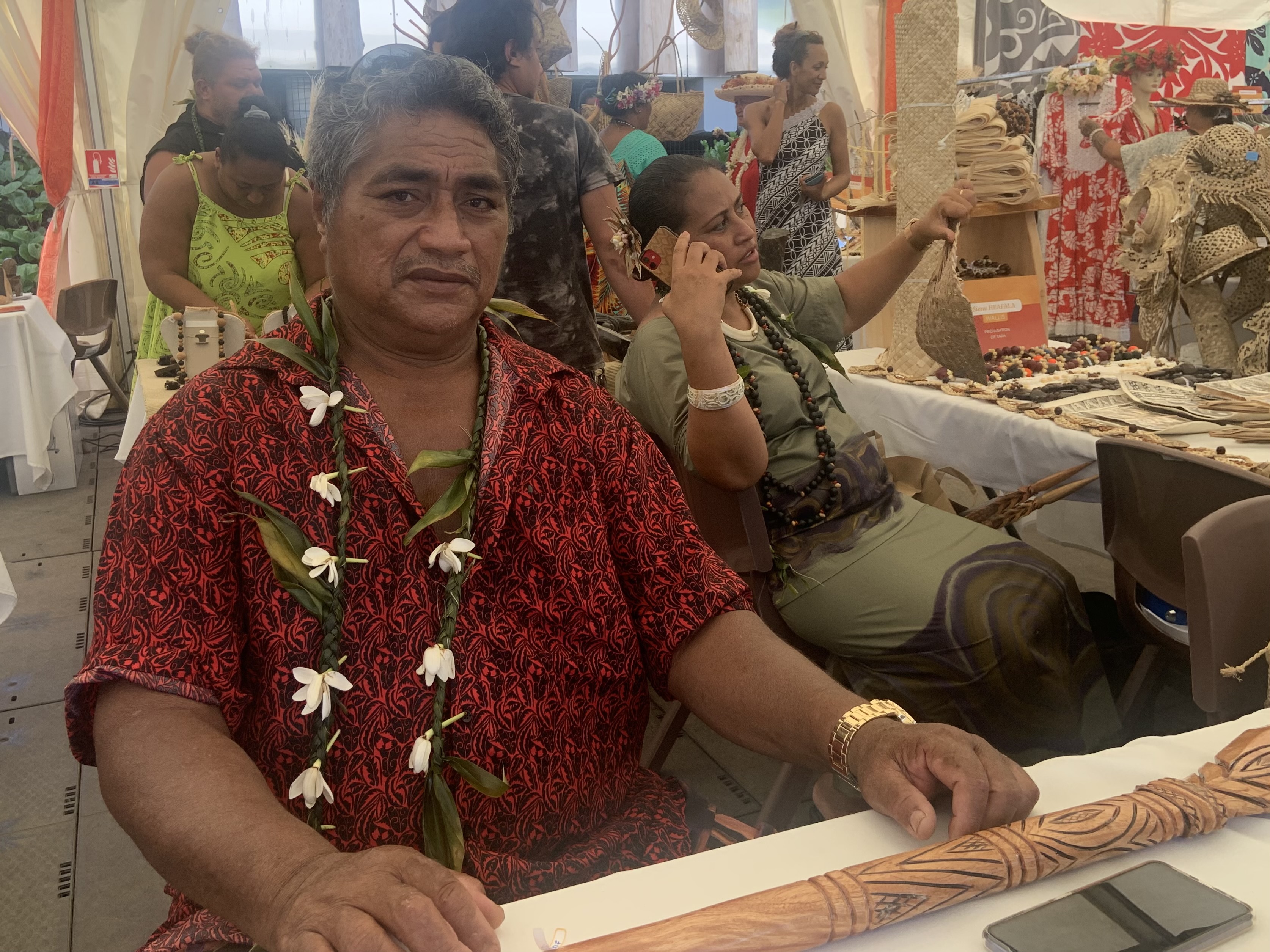 “C'est le service de l'artisanat polynésien qui a contacté Wallis-et-Futuna pour demander si deux artisans pouvaient venir pour ce salon. Moi, je représente Futuna et un autre représente Wallis, mais lui c'est du tapa, moi c'est de la sculpture.”