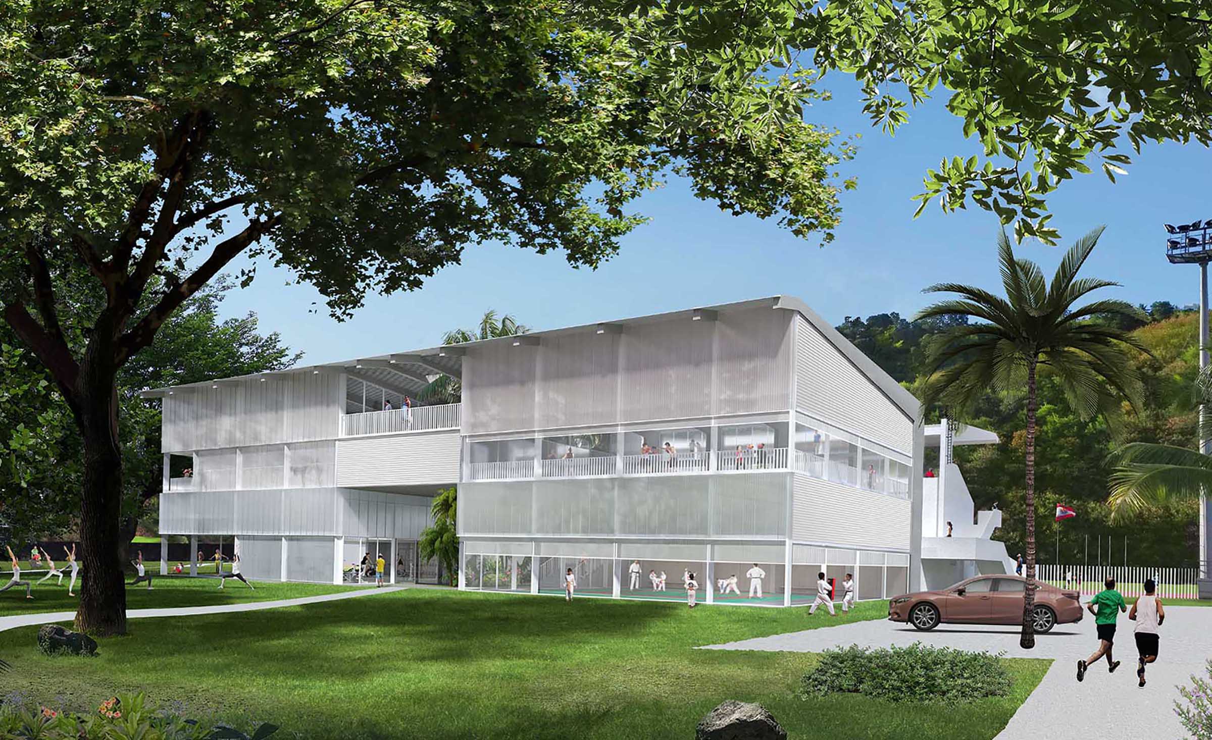 Du côté sportif, ce futur bâtiment, qui prendra place à l'arrière de la tribune de l'actuel stade de Punaruu, devrait offrir aux fédérations sportives de combat un bel outil. L'infrastructure de 1 200 mètres carrés, “d'une conception très aérée”, sera partagée notamment en quatre salles de 230 mètres carrés chacune. Au rendez-de-chaussée on retrouvera donc une salle de musculation et une autre consacrée uniquement à la boxe. A l'étage, un espace sera consacré aux arts martiaux mixtes et la dernière salle abritera un dojo de judo. Trois disciplines sportives retenues qui sont parmi les plus populaires au fenua et qui cumulent à elles trois, selon les chiffres du Comité olympique de Polynésie française (COPF), près de 2 700 licenciés.