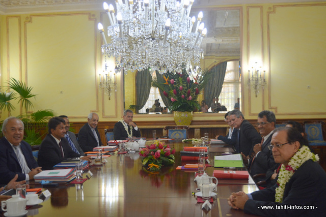 PAPEETE, le 25 mars 2015. Après six mois d'attente, les "ministres en devenir" du gouvernement d'Edouard Fritch, formé mi septembre, prennent effectivement en mains ce mercredi leurs portefeuilles respectifs. C'est le cas pour Herremoana Maamaatuaiahutapu à la culture, au patrimoine et à l'environnement, mais aussi pour Patrick Howell à la santé et la solidarité. Les deux ministres ont été officiellement nommés ce mercredi par le chef du gouvernement, Edouard Fritch.
