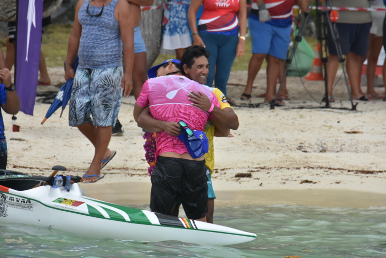 Car en effet les caps, comme c'est souvent le cas sur les traversées en haute mer, ont été déterminants. Sur un cap direct vers Temae, on retrouvait donc Revi Thon Sing qui emmenait avec lui Kevin Céran-Jérusalémy et Tutearii Hoatua. "Sur un cap plus bas, vers Vaiare, on retrouvait Steeve Teihotaata, pas en réussite depuis le départ à Tautira et qui pointait à quasiment dix minutes de la première place au général. Son partenaire à Pirae Va'a et vainqueur du Te 'Aito cette saison, Hititua Taerea, suivait également ce cap de même que Yoann Cronstead. Et si l'impression visuelle donnait Revi Thon Sing en première position après un peu plus de deux heures de course, Temoana Taputu, coéquipier de Tutearii Hoatua au Team OPT, s'est fait oublié en optant pour un cap encore beaucoup plus au nord que ses rivaux. Un choix payant pour l'intéressé qui pointait en tête au large de Temae avec près de 500 mètres d'avance sur Revi Thon Sing qui n'arrivait pas de son à côté à se défaire de Tutearii Hoatua.