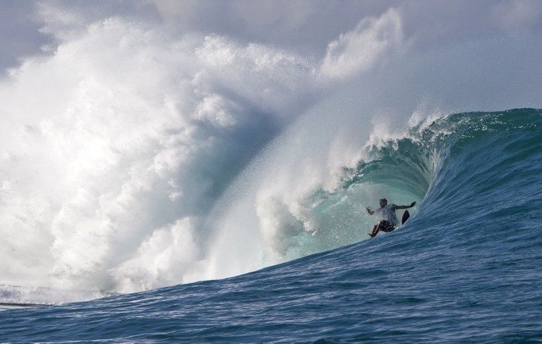 Garrett Mc Namara, Shane Dorian, Kamalei Alexander: les légendes du gros surf enchaînent les tubes depuis lundi, tractés par des jets-skis pour aller chercher la vague au large. Et "le" maître est là aussi, le Hawaïen Laird Hamilton, 49 ans, célèbre pour avoir dompté Teahupoo en août 2000, un jour où cette +gauche+ monstrueuse avait été mesurée à 15,07 m, gagnant au passage le label de "vague du Millénaire".