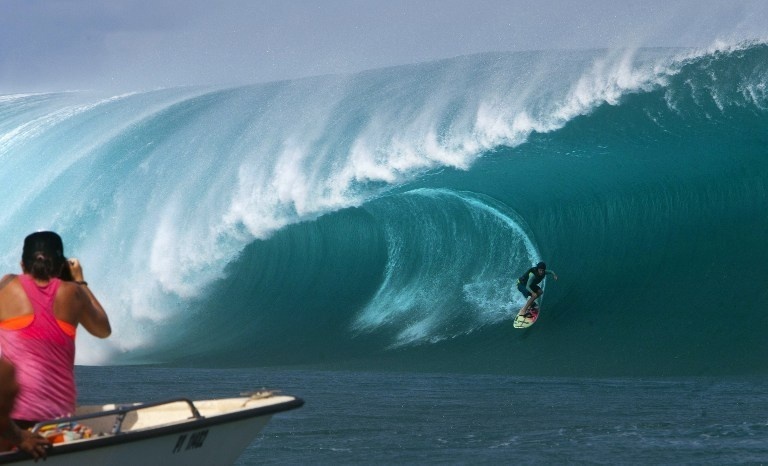 Alors que les surfeurs à la recherche du titre de champion du monde sont au chômage technique du côté de Rio de Janeiro, où la troisième manche du circuit mondial est suspendue, faute de vagues, les fans des grosses vagues ont pris eux le chemin de la Polynésie française et de la presqu'île de Taiarapu, alias Tahiti Iti, pour défier Teahupoo.