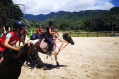Les matinées de samedi et dimanche n’ont pas été de tout repos pour les poussines et benjamines du club équestre de Raiatea. Elles avaient rendez-vous avec Antonin Mianné pour affiner leurs connaissances en horse-ball. Le stage a débuté avec un rappel de la théorie du jeu. Ce sport collectif, qui se pratique en général à quatre contre quatre, possède en effet des règles bien précises. L’objectif est de marquer des buts à l’aide de la balle, en faisant au moins trois passes entre trois joueurs différents, sachant qu'il est interdit de tenir le ballon pendant plus de dix secondes. Des règles de sécurité pour les cavaliers et les chevaux s'ajoutent aux règles du jeu. Les actions d’attaque et de défense se font par exemple dans le même sens, car il serait trop dangereux d’avoir deux chevaux en sens opposé.