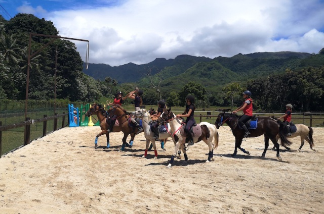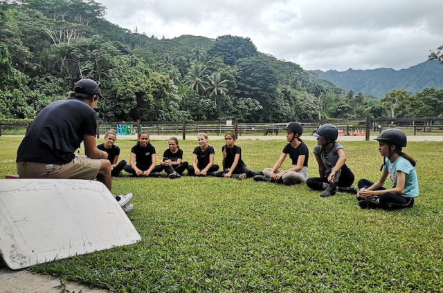 Aodrena Leroi, la propriétaire du ranch, est passionnée de chevaux et cavalière depuis son jeune âge. Elle explique avoir ouvert la discipline de horse-ball en août, suite à l’engouement des cavaliers autour de ce sport à Tahiti. Il a cependant fallu préparer le terrain en amont, notamment pour les chevaux "parce qu’ils doivent s’habituer à la balle qui leur arrive dessus, ça peut être un peu effrayant pour eux au début donc nous on les y a familiarisés petit à petit." Parmi la trentaine de cavaliers de tous âges que compte le club, huit jeunes filles de 9 à 12 ans suivent les entraînements de horse-ball dans la carrière de Avera tous les mardis, entraînées par Pauline, leur monitrice. Ces cours permettent d’apporter une nouvelle discipline sur la structure, en plus du dressage et du concours complet de saut d'obstacles. Aodrena précise que la discipline est ludique, "ça permet de progresser et d’apprécier réellement. S’amuser en apprenant, c’est quand même plus sympa.