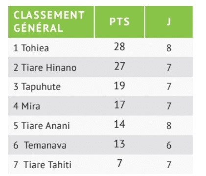 Moorea, le 23 mai 2022 - À l’issue de la 10e journée de la phase 2, Tohiea reste en tête du classement après sa victoire contre Tiare Anani (3-0). Après avoir dominé Mira (2-1), Tiare Hinano suit toujours le leader de près avec un point de retard. En battant facilement Tiare Tahiti (4-1), Tapuhute remonte pour sa part à la troisième place.