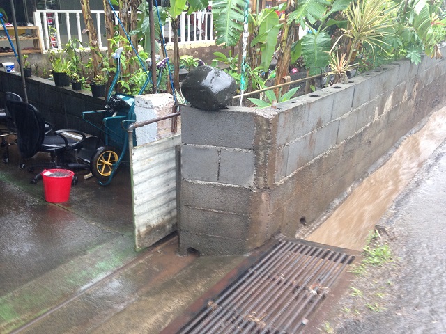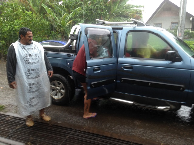 PAPEETE, le 22 décembre 2015. Les fortes pluies qui ont touché l'île de Tahiti ce mardi ont ravivé les craintes des habitants de la côte Est qui craignent le pire. Certaines familles ont préféré quitter leur foyer tandis que d'autres essayent tant bien que mal à protéger leurs maisons. Météo France annonce pour ce mercredi un ciel nuageux pour la moitié Ouest et quelques ondées sur le relief et la côte Est.
