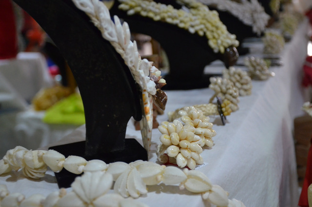 Des parures de colliers de coquillages, des tīfaifai, des robes, du miel, de la vanille… Le salon propose les réalisations d'une trentaine d'exposants venus de toutes parts. Mais les temps sont durs et, alors que l'année dernière la plupart des exposants étaient originaires des îles Sous-le-Vent, cette année, ils sont nombreux à venir d'ailleurs. "Les organisateurs donnent les places en priorité aux gens des Raromatai mais après, quand il reste des places, nous pouvons nous greffer au salon", explique une exposante. Alors que certains ont tout simplement renoncé au salon, d'autres artisans ont préféré envoyer leurs marchandises sans faire le déplacement. Rosina Mou Fat explique ces absences du fait du coût financier :"Il y en a qui ne sont pas venus parce que cela coûte trop cher, mais leurs affaires sont là. Nous nous entraidons entre nous, celles qui sont venues s'occupent des affaires de celles qui sont absentes. Comme ça, il y a des produits d'une quinzaine de personnes qui sont arrivés."