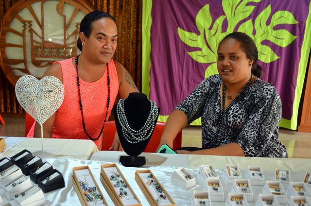"C'est bien de travailler en duo" explique une exposante originaire de Kokura. "Je loue un stand avec une mamie de Maupiti, parce que toute seule, cela coûte trop cher. Là on se partage les frais. Je reçois les coquillages et les colliers de la famille à Kokura et moi je travaille aussi ici. L'association artisanale a été créée pour venir en aide aux enfants et petits-enfants qui font des études à Tahiti. Mais, parfois, les salons ne marchent pas trop et on rentre tout juste dans nos frais pour rembourser le coût du stand et ce que cela coûte d'être sur place."