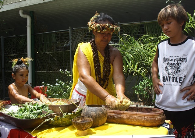 Hier matin, de nombreux écoliers ont pu découvrir avec leur professeur la fabrication du mono'i. « J'ai voulu qu'ils voient comment on fabrique le mono'i, ce qu'on prend et ce qu'on met dans le mono'i et ce qu'on en fait », explique Hinano, enseignante dans la classe de section des tout-petits à l'école privée protestante de Taunoa, à Papeete. « Ils connaissaient le mono'i mais pas le mono'i traditionnel. Il connaissait surtout le mono'i du magasin ».