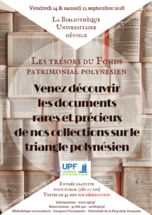 Celui-ci est habituellement conservé dans les magasins de la bibliothèque, mais il sera exposé pour l’occasion afin que le public puisse le consulter. Certains de ces trésors sont accessibles en ligne via la bibliothèque scientifique numérique polynésienne Ana’ite, inaugurée en novembre 2017, mais également sur le site Trésors des bibliothèques de l’enseignement supérieur.