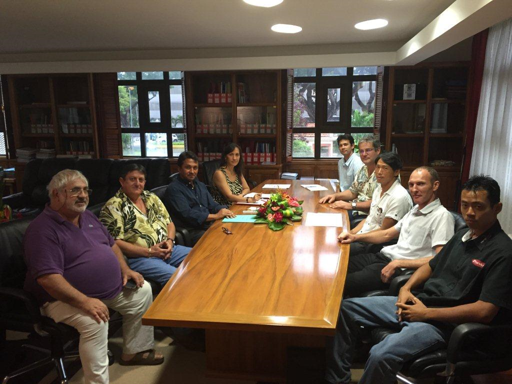 PAPEETE, le 27 février 2016. Le vice-président Nuihau Laurey, en charge des énergies, a reçu jeudi le nouveau syndicat des professionnels de l’énergie solaire, Synergie solaire de Polynésie.