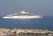 ANTIBES, 22 août 2011 (AFP) - L'Eclipse, le plus long yacht du monde, propriété du milliardaire russe Roman Abramovitch, était amarré lundi dans la baie d'Antibes, ses mensurations (162,5 mètres de long) lui interdisant un amarrage au port.