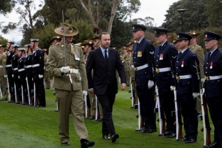 Garde d’honneur pour le nouvel ambassadeur de France en Australie, Christophe Lecourtier, lors d’une cérémonie à Canberra (Source photo : ambassade de France à Canberra)
