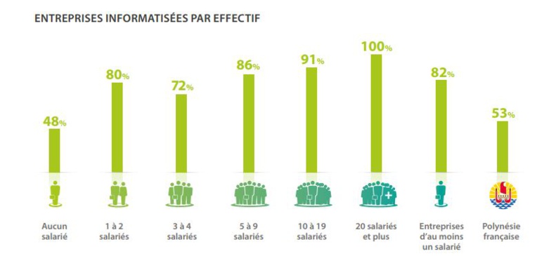 La connexion à internet. 80% des ménages polynésiens ont internet à leur domicile. Parmi les 20 % des ménages des IDV n'ayant pas de connexion Internet à la maison, le prix des abonnements (37 %) et le manque d’utilité (24 %) sont évoqués en priorité, alors que le coût des équipements a reculé et est un moins grand frein qu'en 2013. Dans les archipels éloignés, le plus gros problème est tout simplement l'absence de service pour 28% des sondés.