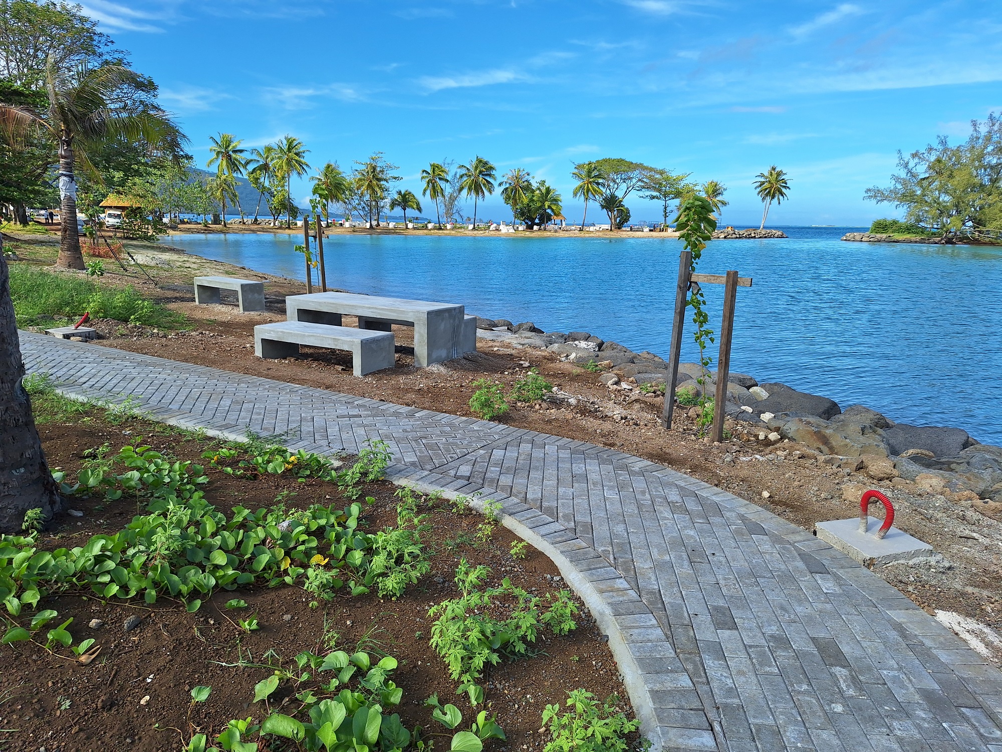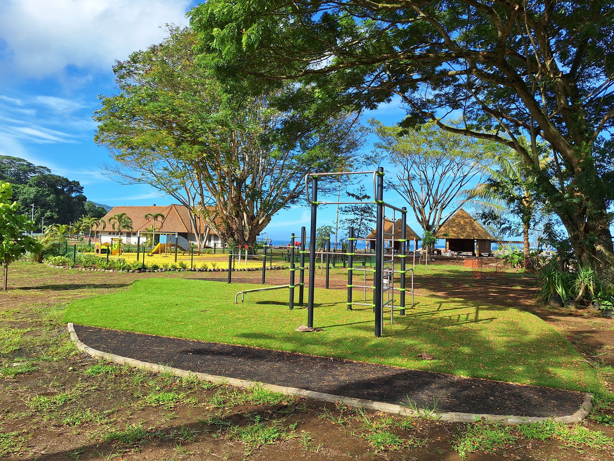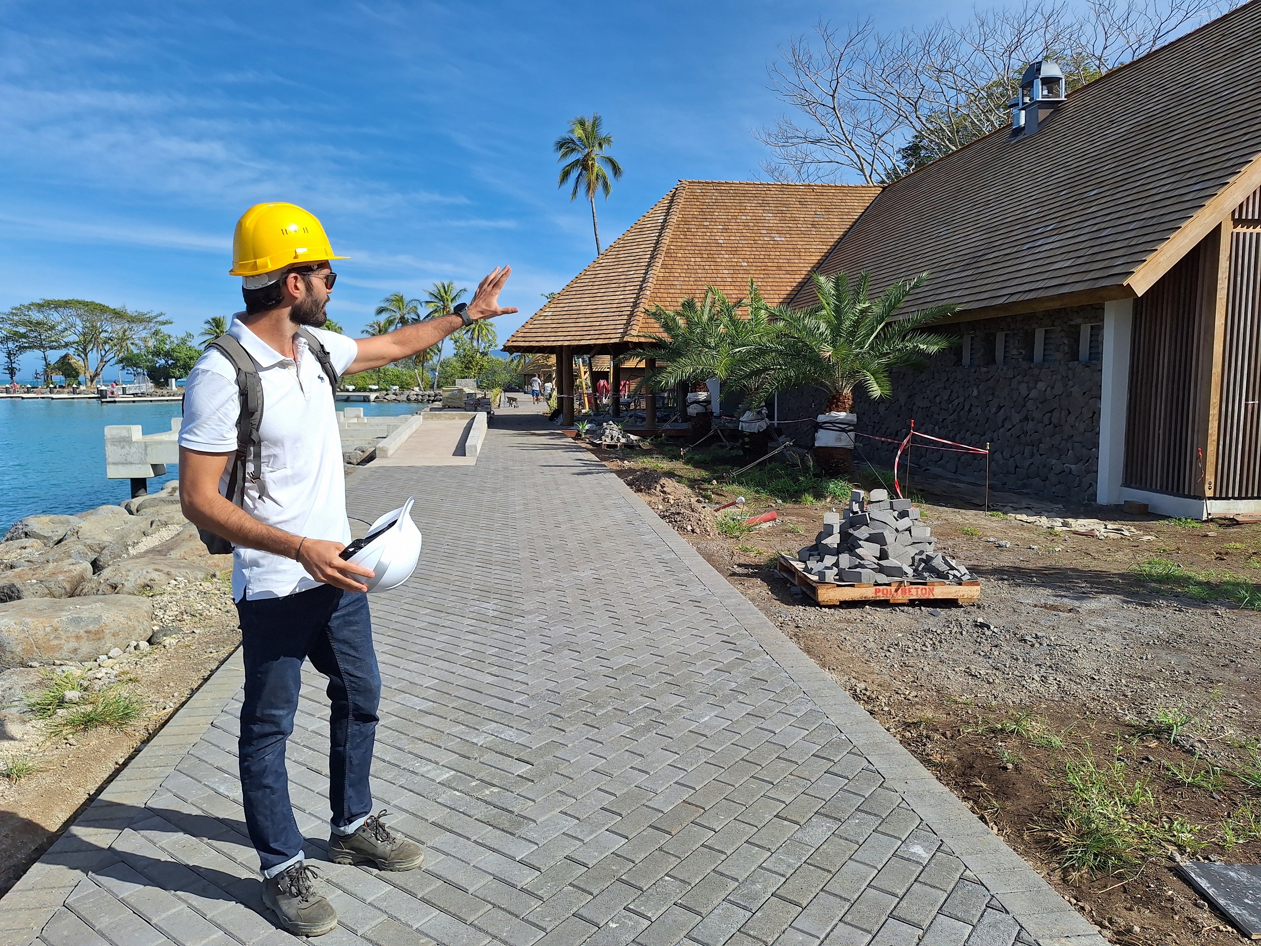 “C’est un gros projet. Le parc a été pensé pour les habitants de Tahiti et de la Presqu’île, et aussi comme un point d’entrée des croisiéristes”, rappelle Bastien Aquet, chef de la section études et travaux du Service du tourisme, en marge de la réunion de chantier hebdomadaire. Accessible aux personnes à mobilité réduite (PMR), le site de Toahotu dispose désormais d’un restaurant avec terrasse, de plusieurs fare artisanaux et événementiels, d’une marina refaite à neuf, de sanitaires, de douches autour de la lagune dont la plage sera réensablée, d’un boulodrome, d’une aire de jeux pour les enfants et d’agrès sportifs pour les plus grands, mais aussi de deux espaces distincts pour les rameurs et les pêcheurs avec une rampe de mise à l’eau.