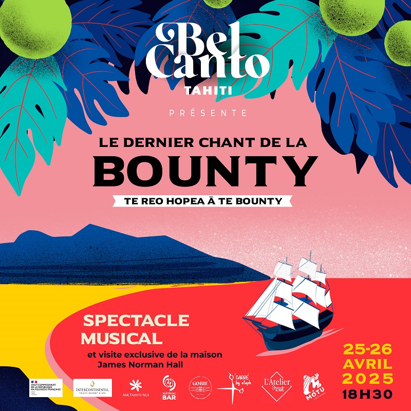 Tahiti, le 7 avril 2025 - Le groupe de chant lyrique Bel Canto Tahiti présente, les 25 et 26 avril prochains, un spectacle qui mêle danses et chants à la Maison James Norman Hall. Intitulé Le Dernier chant de la Bounty, Te reo hope’a ā te Bounty, il raconte le voyage du fameux navire de l’Angleterre à Pitcairn.