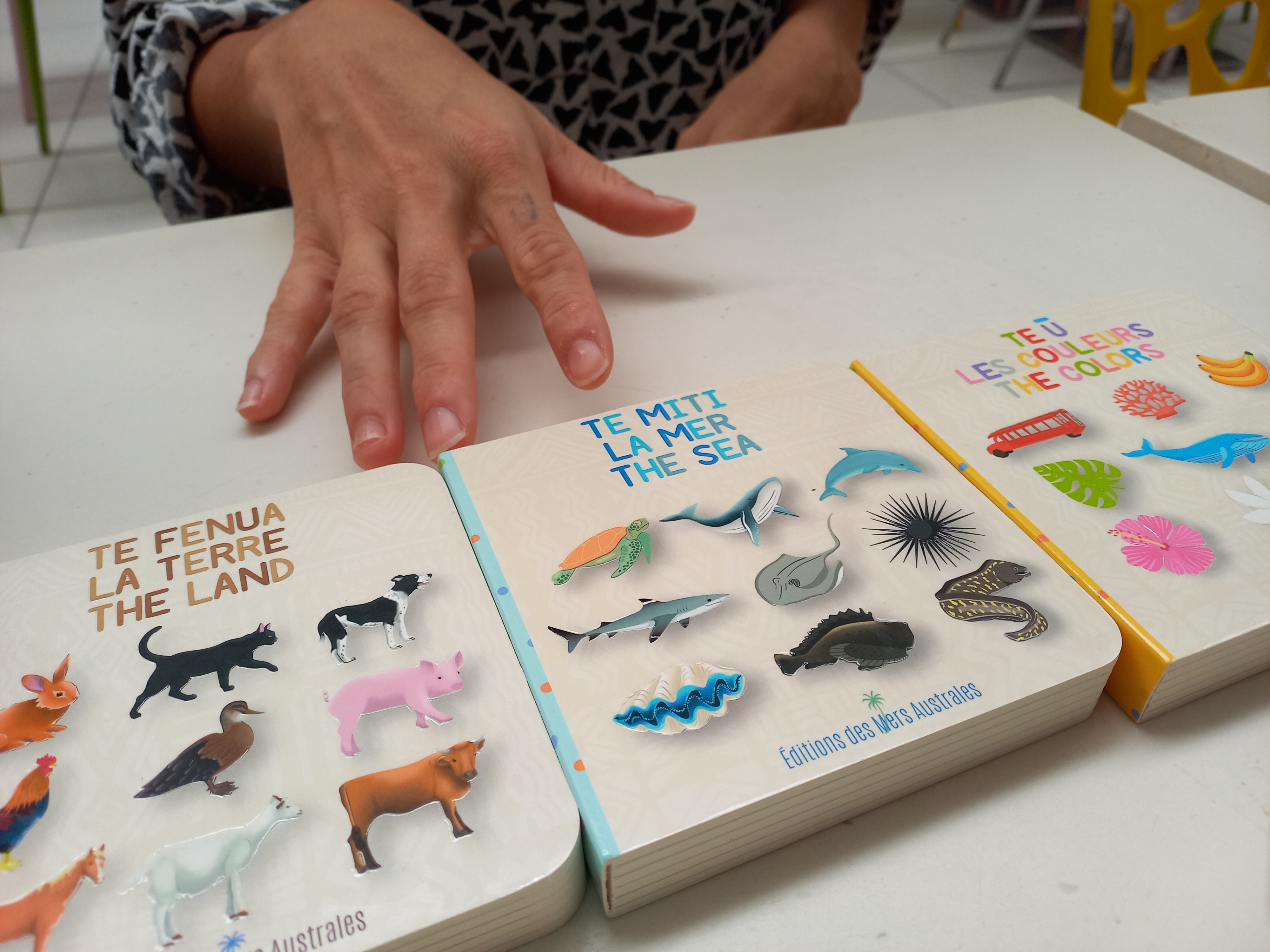 Elle a sélectionné les termes, avec Heimanu Buisson, “les plus accessibles au plus grand nombre afin que les Polynésiens se réapproprient leur langue et, à travers elle, leur culture”. Elle a cherché et trouvé un imprimeur pour réaliser des livres rigides au format carré, adapté aux très jeunes lecteurs.
