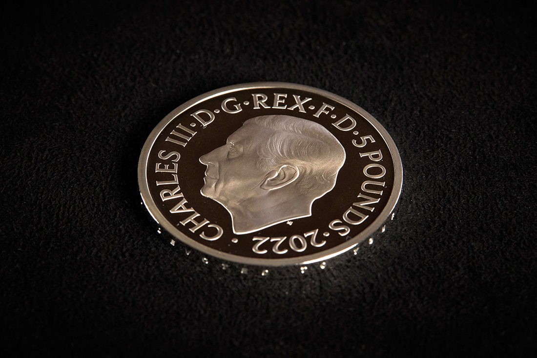 Les pièces à l'effigie du roi porteront l'inscription en latin: "CHARLES III • D • G • REX • F • D • 5 livres • 2022”, soit "Roi Charles III, par la grâce de dieu, défenseur de la foi" - l'un des titres du souverains.