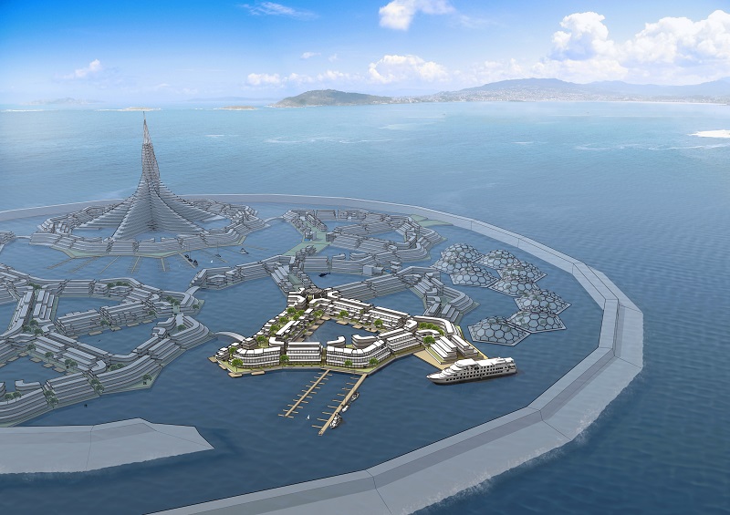 Créer un prototype d'île flottante en Polynésie : le projet a séduit les technophiles locaux, et les promesses d'investissements ont intéressé le gouvernement. Mais face à l'opposition d'une partie de la population et l'échec de sa dernière levée de fonds, le projet est mal en point (crédit image : Seasteading Institute).