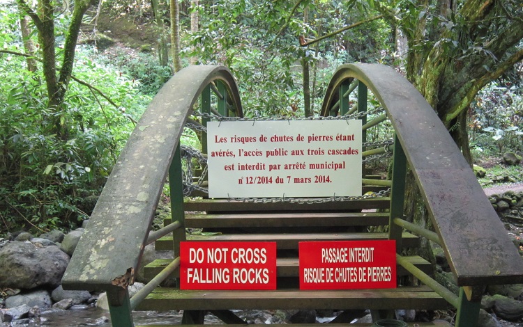 TIAREI, le 22 avril 2014. Le site touristique des trois cascades situé sur la commune de Tiarei, sur la côte Est de Tahiti, a été fermé depuis quelques semaines déjà au public en raison de risques d’éboulement, et ne sera pas rouvert avant encore de longs mois. En effet, pour pouvoir gérer plus facilement ce site et l'aménager comme il se doit, le Pays est en phase de devenir propriétaire des parcelles sur lesquelles se situent ces trois cascades de Fa’aurumai.