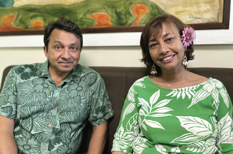 Tahiti, le 24 avril 2023 – La tête de liste et la présidente en cas de victoire du A Here ia Porinetia, Nuihau Laurey et Nicole Sanquer, répondent aux questions de Tahiti Infos sur le programme du parti vert et blanc avant le second tour des élections territoriales. Réforme des institutions, fiscalité ou encore évolution statutaire au menu…