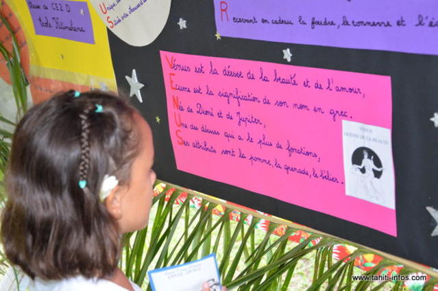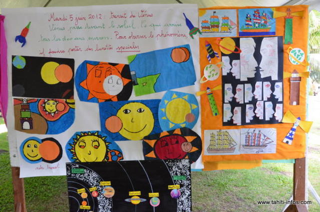 De nombreux établissements scolaires de la côté Est de Tahiti ont utilisé le transit de Vénus comme objet de projets. Au travers de cela, certains élèves ont découvert le fonctionnement du système solaire, la vie des planètes. D’autres ont étudié l’histoire polynésienne et la rencontre du Capitaine James Cook et des tahitiens. Des expositions sur ces thèmes étaient visibles sur place pour les quelques 800 élèves présents pour l’occasion.