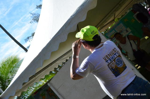 Depuis midi, la planète Vénus est visible, passant devant le soleil, tel un grain de beauté pour cet astre. Visible en Polynésie, cet évènement a été l’occasion d’organiser une grande manifestation à la Pointe Vénus, lieu où le Capitaine Cook avait observé le phénomène il y a 243 ans.