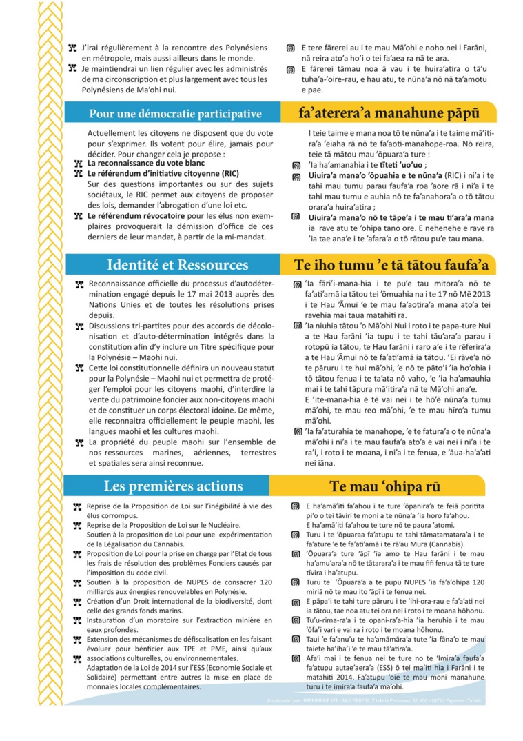 Autre proposition de loi portée durant son premier mandat, et actuellement renvoyée en commission, Moetai Brotherson maintient son texte visant à rendre inéligible à vie les élus définitivement condamnés pour détournement de fonds publics ou corruption. “Il y a une perte de confiance entre les citoyens et le politique. Une partie vient de tous ces élus corrompus qui se représentent à chaque élection. Même symboliquement, envoie un bon message.” Sur la loi Morin, il ambitionne également d'introduire la notion de réparation du préjudice environnemental, de démarrer les études sur les transmissions intergénérationnelles, de reconnaître les victimes collatérales des essais nucléaires et d'obtenir le remboursement des frais de la CPS pour les maladies radio-induites à hauteur de 100 milliards de Fcfp.