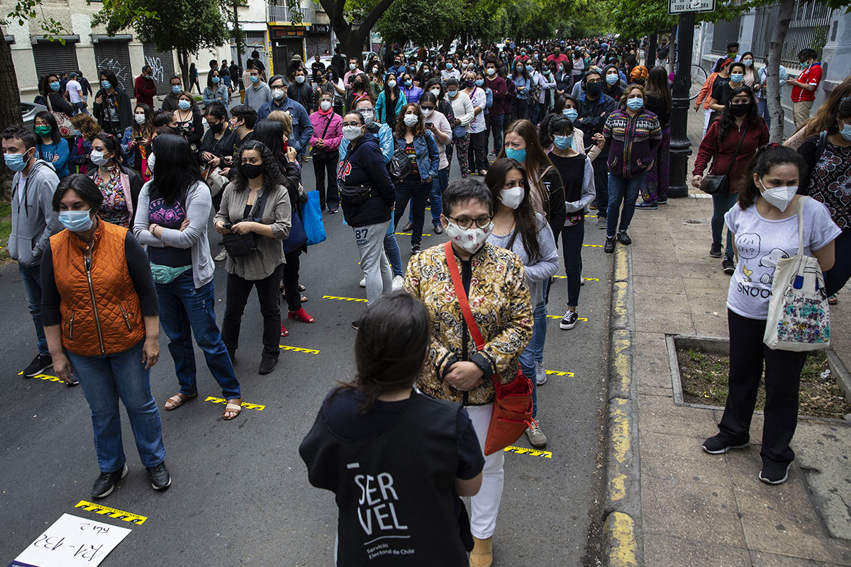 En raison de la pandémie de coronavirus qui a durement frappé le Chili (500.000 contaminations, 14.000 décès), les électeurs, dûment masqués, ont formé toute la journée de longues files d'attente devant les centres de vote, appliquant les mesures de distanciation physique, a constaté l'AFP.