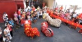 Les Lions effectuent leur chorégraphie devant le public et les membres de Si Ni Tong. Le rouge, symbole de bonheur et de chance, habille les spectateurs. Certains glissent une enveloppe avec une somme d'argent dans la bouche de l'animal avant de le caresser pour avoir de la chance pour cette année de la Chèvre.