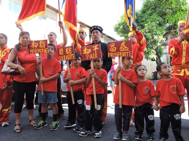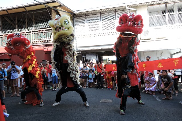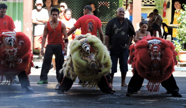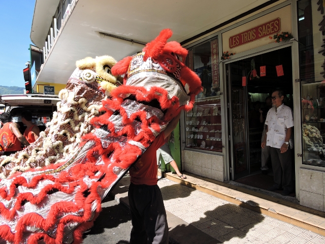 PAPEETE, le 19 février 2015. Les festivités du Nouvel An chinois ont débuté ce jeudi matin avec la danse du Lion. Les lions ont sillonné la ville de Papeete pour chasser les mauvais esprits.