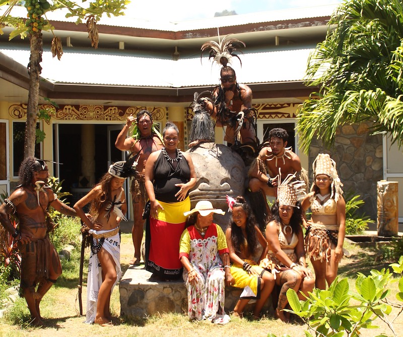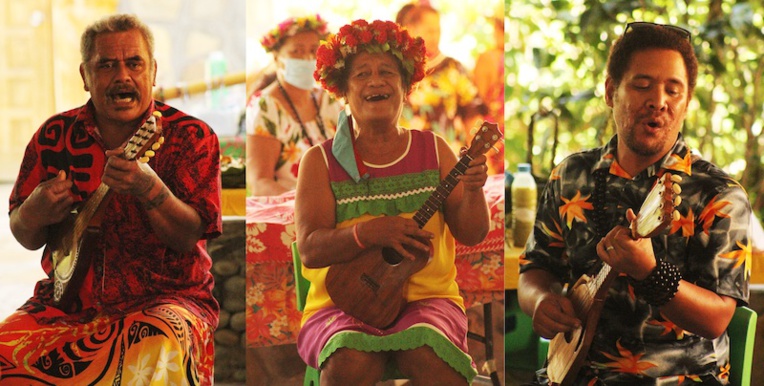 Tout d’abord la troupe Kanahau, dirigée par Jean Kautai, célèbre sculpteur de pierre fleurie de la vallée d’Hohoi. Un groupe de musique traditionnelle principalement axé sur les chants polynésiens et le ukulele. « Oh j’ai toujours aimé la musique, nous dit celle que tout le monde ici appelle affectueusement Mamie Tia, j’ai commencé à chanter et à jouer à l’église avec les enfants il y a longtemps. Depuis, les choses ont évolué, on a chanté avec le groupe News Banana à Tahiti déjà et on est présents à chaque Aranui maintenant, j’y prends beaucoup de plaisir à chaque fois. »