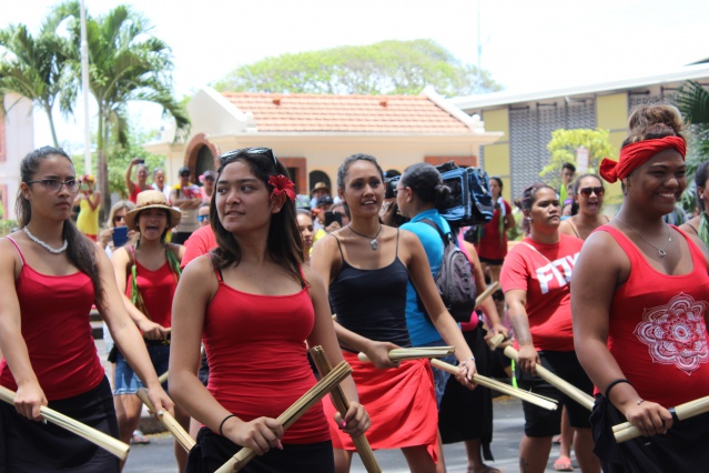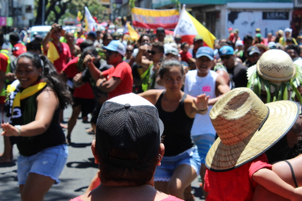 Au rythme des haka et des chants marquisiens, les manifestants ont parés les rues de Papeete de rouge et jaunes. "Non à la pêche industrielle! oui à la pêche artisanale!" scandaient les près de cinq cents marcheurs, s'interrompant de temps à autres pour lancer un spectacle de danse.