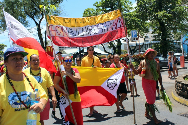 "Tant que ce projet ne sera pas abandonné, nous continuerons de nous battre!", lâche Pierre Tehotu, porte-parole du collectif des Marquisiens de Tahiti, grisé par leur succès de la manifestation.