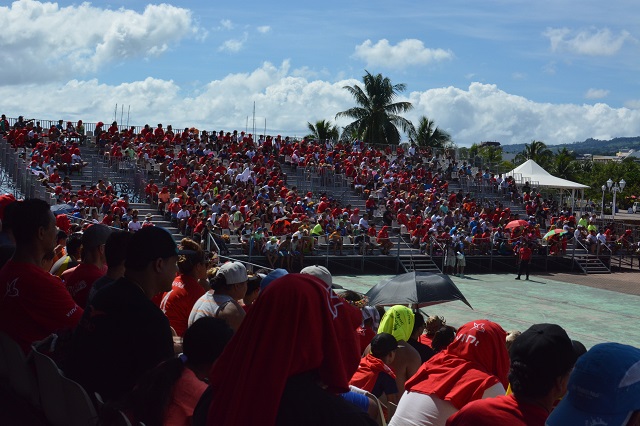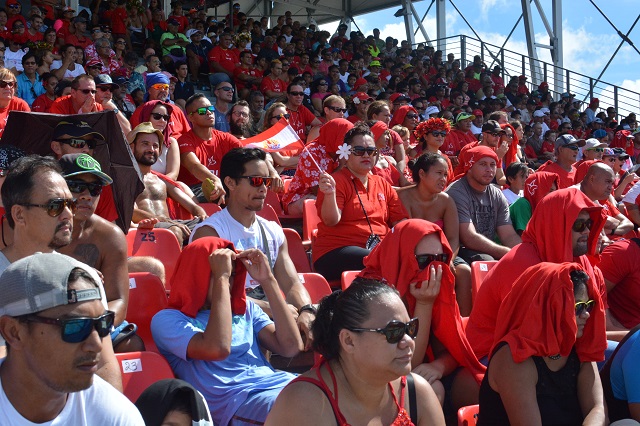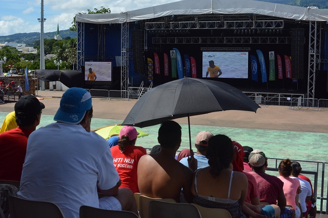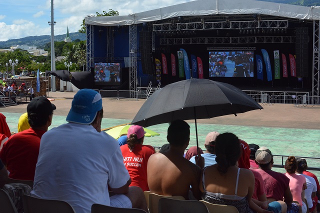 PAPEETE, le 7 mai 2017. La finale de la coupe du monde de beach soccer était retransmise ce dimanche matin à To'ata. Plusieurs centaines de Polynésiens se sont déplacés pour assister au match.