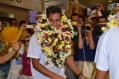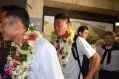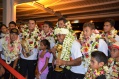 PAPEETE, le 24/07/2015 - Les joueurs de beachsoccer sont rentrés au fenua le 24 juillet. Un accueil très chaleureux leur a été réservé malgré l’heure tardive. Bien loin de la polémique.