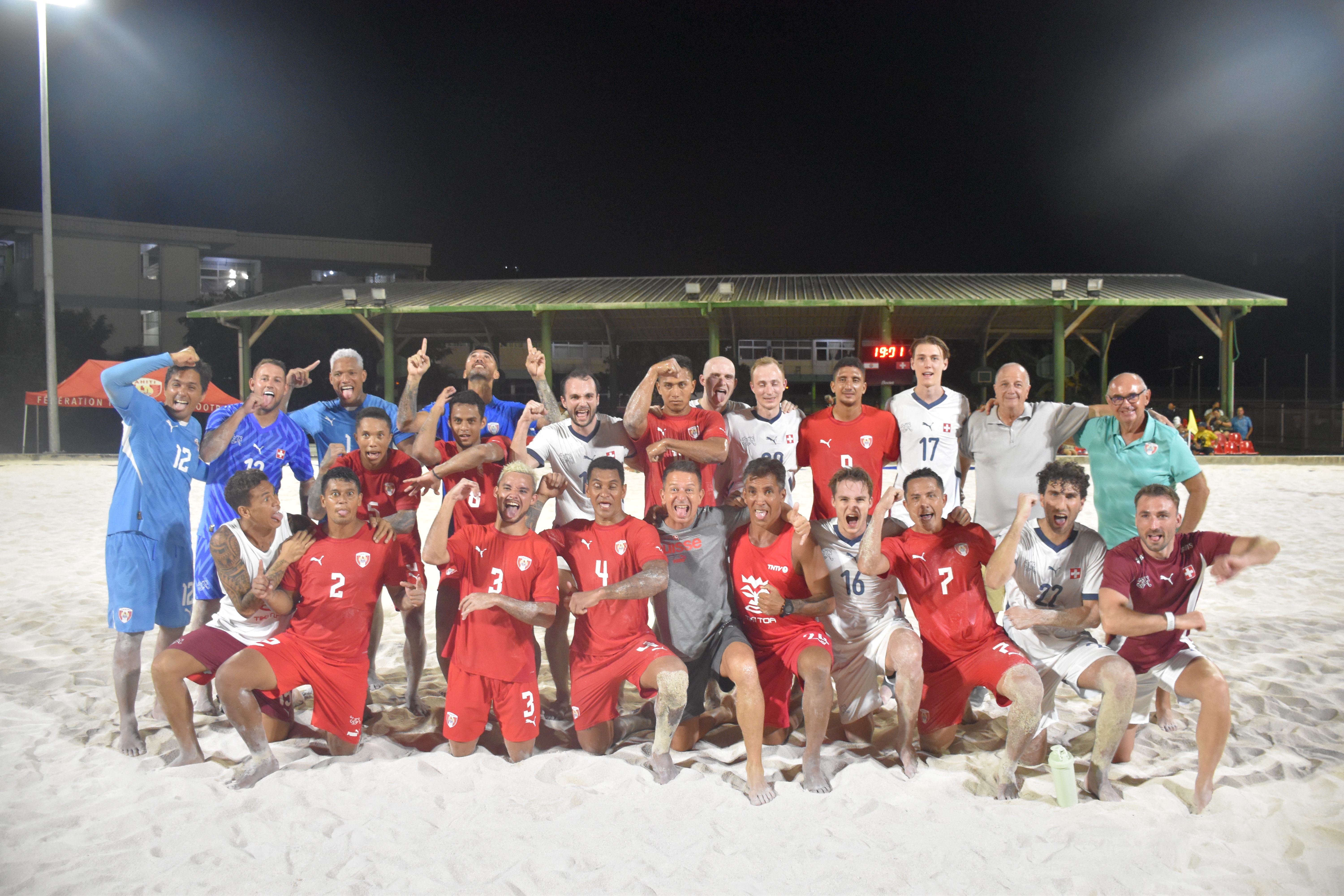 Tahiti, le 12 avril 2025 - Après avoir effectué un stage aux Bahamas au mois de février, les Tiki Toa poursuivent leur préparation pour la Coupe du monde de beach soccer, qui se déroulera aux Seychelles du 1er au 11 mai. Cette semaine, nos joueurs ont pu s’entraîner intensément et affronter l’équipe de Suisse, venue en stage au Fenua. Une série de trois matchs qui ont permis au sélectionneur Teva Zaveroni de peaufiner sa préparation et de finaliser sa liste pour le Mondial.