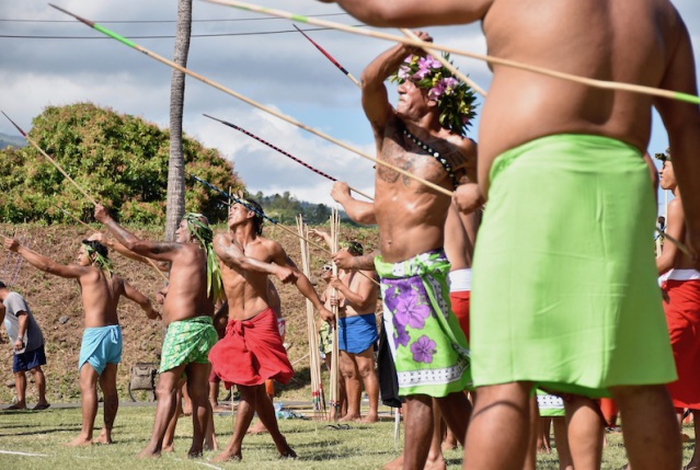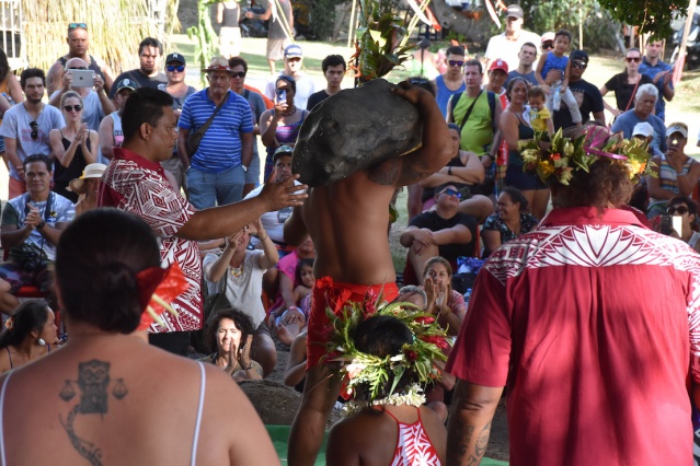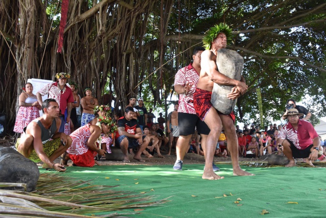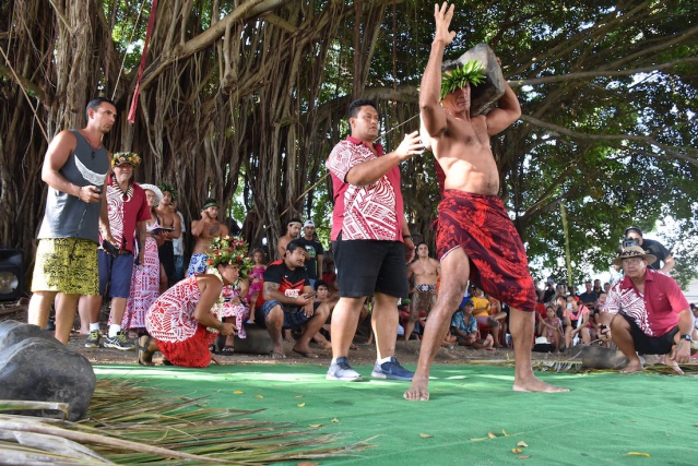 PUNAAUIA, 14 juillet 2019 - Les épreuves du Heiva Tu’aro Ma’ohi débutées jeudi à Papeete par les courses de porteurs de fruits se prolongent ce week-end au Parc Vairai avec les traditionnels rendez-vous du lever de pierre, du lancer de javelots, du décorticage de coprah, de la lutte traditionnelle et du grimper au cocotier. Spectacle assuré.