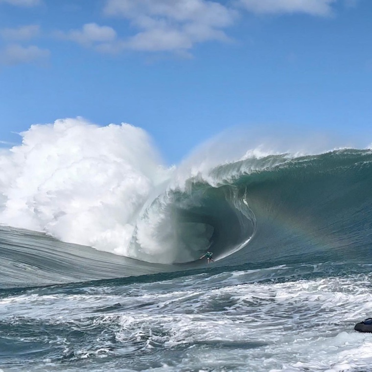Et le premier héros de ce “Code Red II” se nomme Eimeo Czermak. Le gamin de 18 ans, propulsé en tow-in par le Brésilien, Lucas Chumbo Chianca, s'est élancé sur un monstre d'eau de près de 10 mètres. Si le jeune tahitien n'a pas su trouver la sortie et s'est ensuite fait avaler, il s'en est néanmoins sorti indemne. “On est d'abord passé sur une première vague qui était très grosse déjà, et celle qui a suivi derrière était vraiment énorme et très “west”. On a alors accéléré pour essayer de l'attraper en tow-in. J'ai hésité jusqu'au dernier moment avant d'y aller et puis j'y suis quand même allé”, a confié Eimeo Czermak sur les réseaux sociaux.