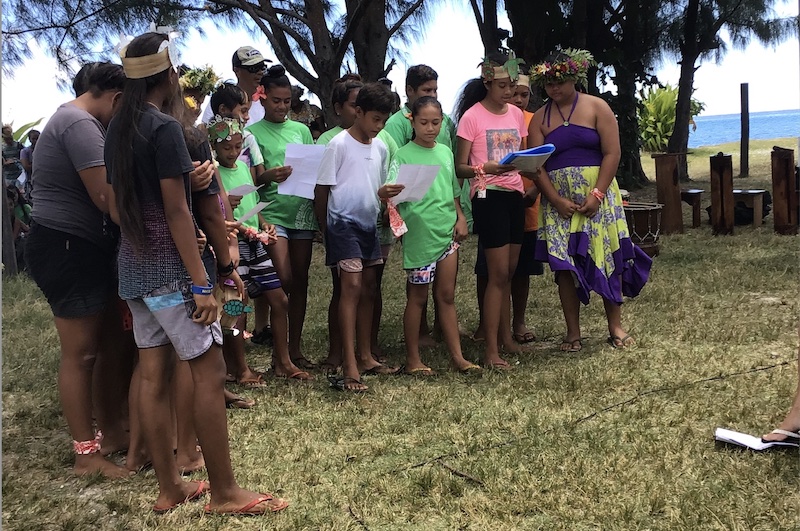 En amont, chaque classe avait travaillé sur différentes thématiques telles que fa'ata'a te pehu (le tri des déchets), pāruru i te honu (la protection des tortues), pāruru i te moana (la protection des océans), te faufa'a o te vai (la préservation de l'eau) et pārururaa i te to'a, (la préservation des coraux).